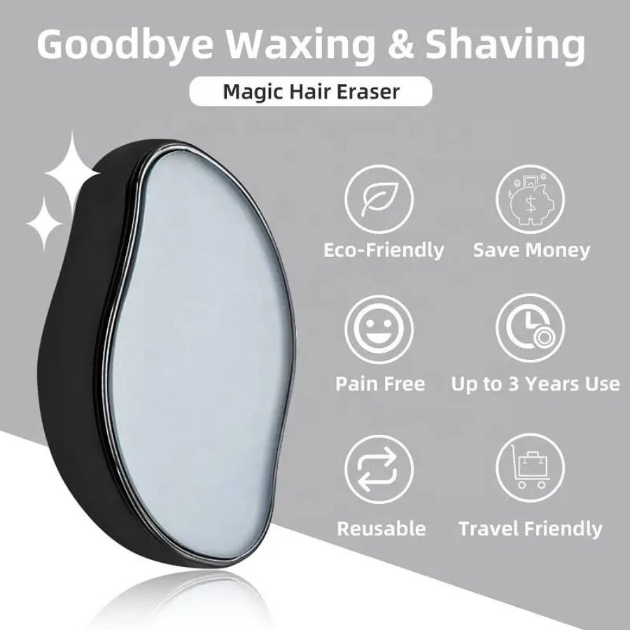1.Crystal hair eraser is made by advanced nano glass techniques,painless and effective to get hair-free by rubbing the skin in a small circular motion .No need razor ,shaving and waxing ,no pain and no fuss . You can get the professional hair removal treatment easily anywhere anytime .Say goodbye to the traditional razor , shaver and waxing.